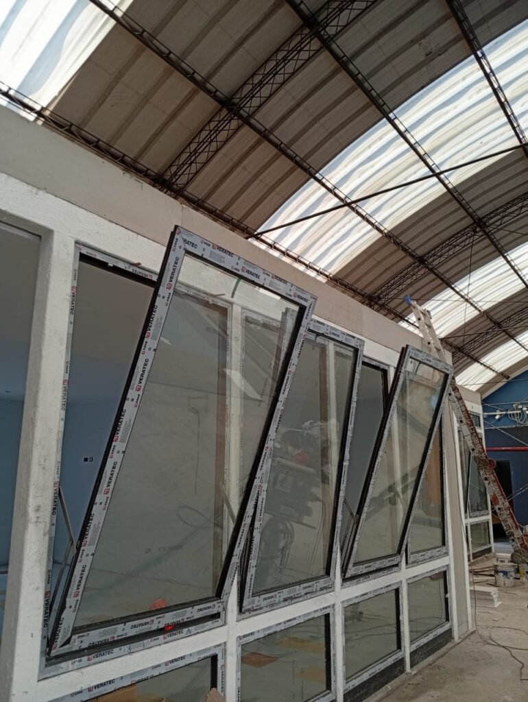 Realizamos reparaciones e instalaciones de ventanas y puertas de aluminio y PVC en diversas áreas del establecimiento.